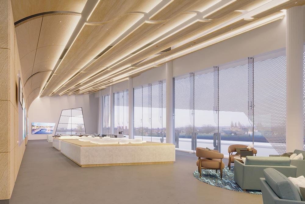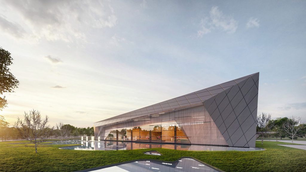Phối cảnh Waterfront City Sales Gallery, Long Hưng, Tp. Biên Hòa, Đồng Nai của chủ đầu tư Nam Long do Level Architect thiết kế. Là phương án trong thiết kế Sales Gallery Izumi City ( Đồng Nai Waterfront Gallery ).